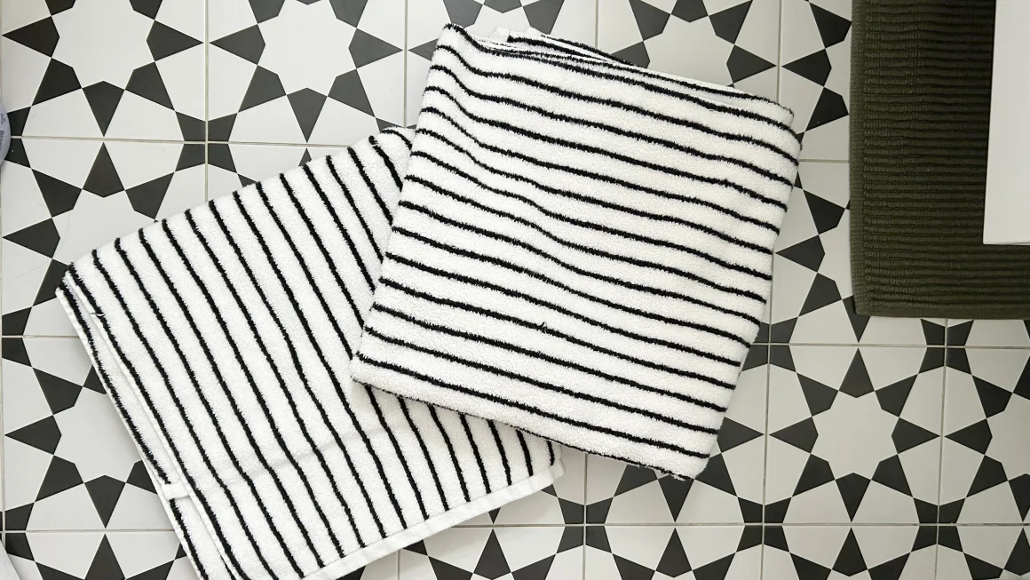 These plush, striped bath towels are crafted from the same blend as the Luxe Hair Towel above. The pack of two is absorbent and soft, perfect for a single homeowner or apartment dweller.
