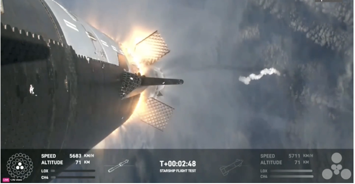 At two minutes and 44 seconds into the flight, the bottom half of the rocket, known as the booster, separated from the top half, the Ship, precisely as planned. From there, the Ship continued its journey, traversing the Atlantic Ocean and southern Africa.